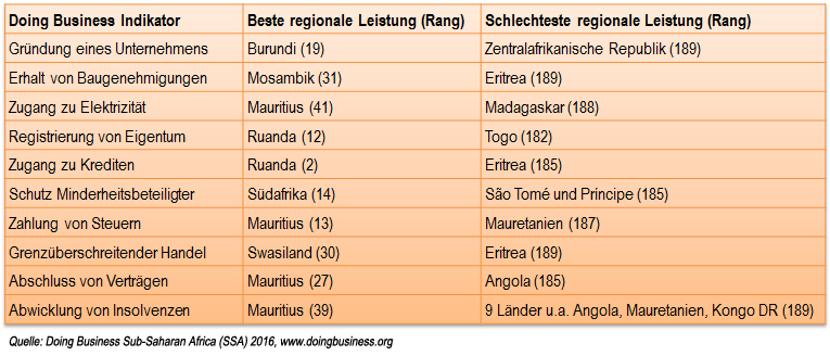 - Hier finden Sie den Doing Business Report 2016 für die Region Subsahara-Afrika (PDF)